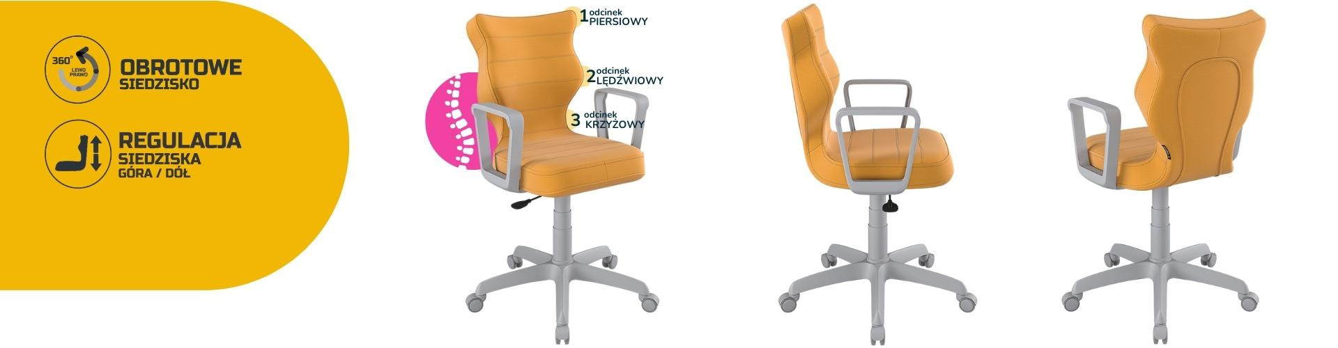 Konkávně-konvexní tvar opěradla zajišťuje správné nastavení páteře a poskytuje uživateli maximální úlevu pro páteř. Vypouklá část sedáku v úrovni bederní oblasti umožňuje správnou polohu nohou a hýždí a ponechává je v jejich přirozené poloze. Dobrá židle pečuje o hrudní, bederní a křížovou oblast.