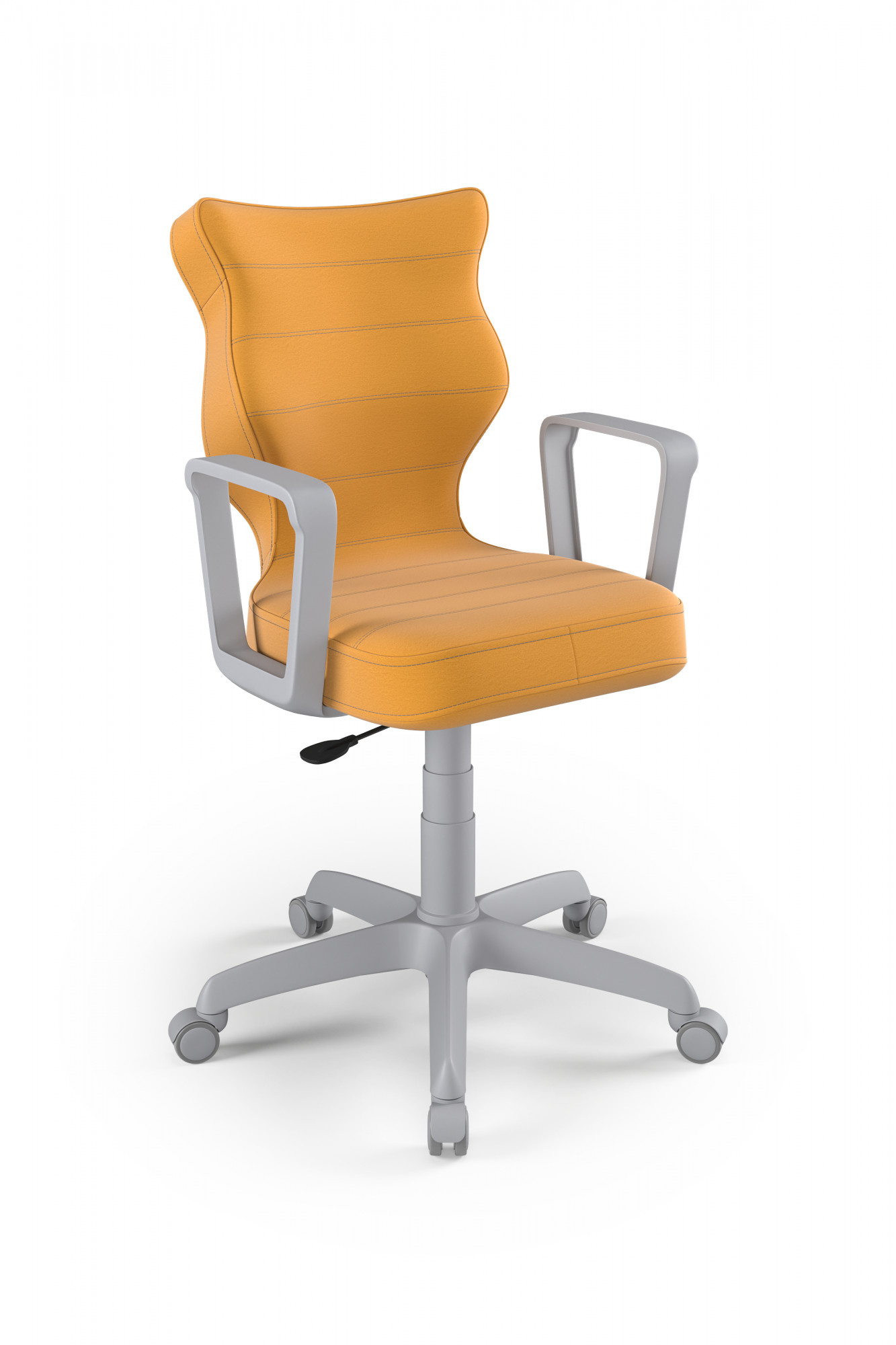 Otočná židle pro teenagery je důležitým kusem nábytku v pokoji každého teenagera. Pro naše zákazníky jsme připravili model Norm, jehož sedadlo je ergonomicky tvarované, díky čemuž uživatel získá maximální pohodlí. Jsme přesvědčeni, že náš výrobek splní vaše očekávání. Čím se židle Norm youth swivel vyznačuje? - Ergonomický sedák z plastu, - pevné područky, rovněž z plastu, v bílé barvě - sedací deska má ocelovou přímou páku, takže židli lze účinně nastavit, - sloupek v podobě plynového zdvihu z oceli a plastu, - teleskopický kryt plynového zdvihu, - měkká šedá kolečka