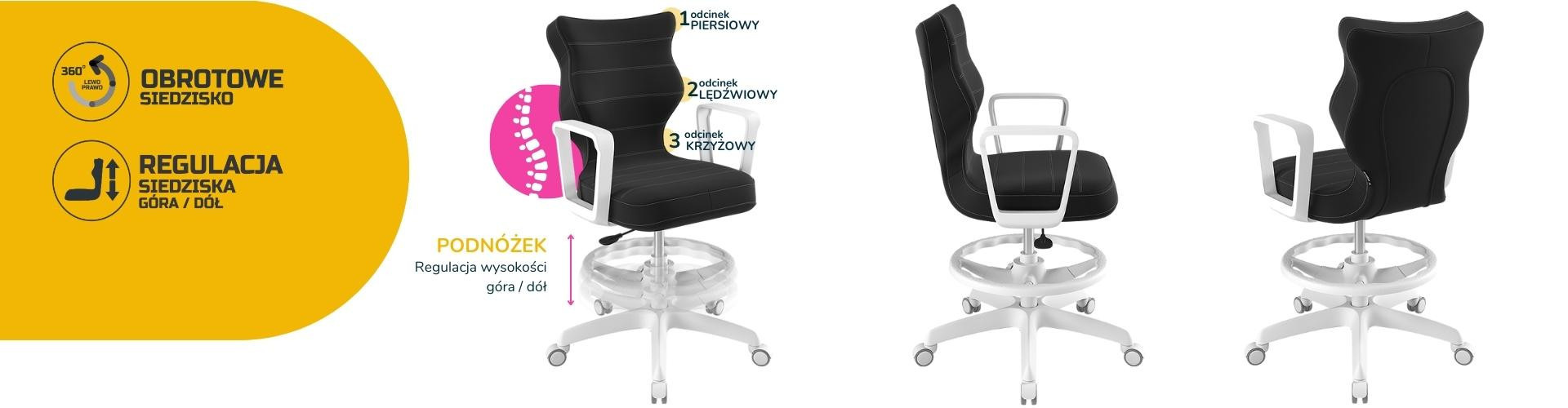Otočná židle pro teenagery je důležitým kusem nábytku v pokoji každého teenagera. Pro naše zákazníky jsme připravili model Norm, jehož sedadlo je ergonomicky tvarované, díky čemuž uživatel získá maximální pohodlí. Jsme přesvědčeni, že náš výrobek splní vaše očekávání. Čím se židle Norm youth swivel vyznačuje? - Ergonomický sedák z plastu, - pevné područky, rovněž z plastu, v bílé barvě - sedací deska má ocelovou přímou páku, takže židli lze účinně nastavit, - sloupek v podobě plynového zdvihu z oceli a plastu, - podnožka s nastavitelnou výškou - měkká bílá kolečka