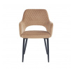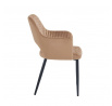 Rozměry: - celková výška židle: 85 cm - výška k područce: 65 cm - výška sedáku: 48 cm - výška područky: 19 cm - výška od sedáku k horní části opěradla: 40 cm - šířka sedáku: 48 cm - šířka židle: 59 cm - hloubka sedáku: 48 cm - tloušťka sedáku: 6 cm Materiál - čalounění: samet - nohy: kov lakovaný práškovou barvou Barva: - sedák + opěradlo: cappuccino - konstrukce: černá