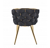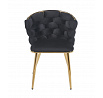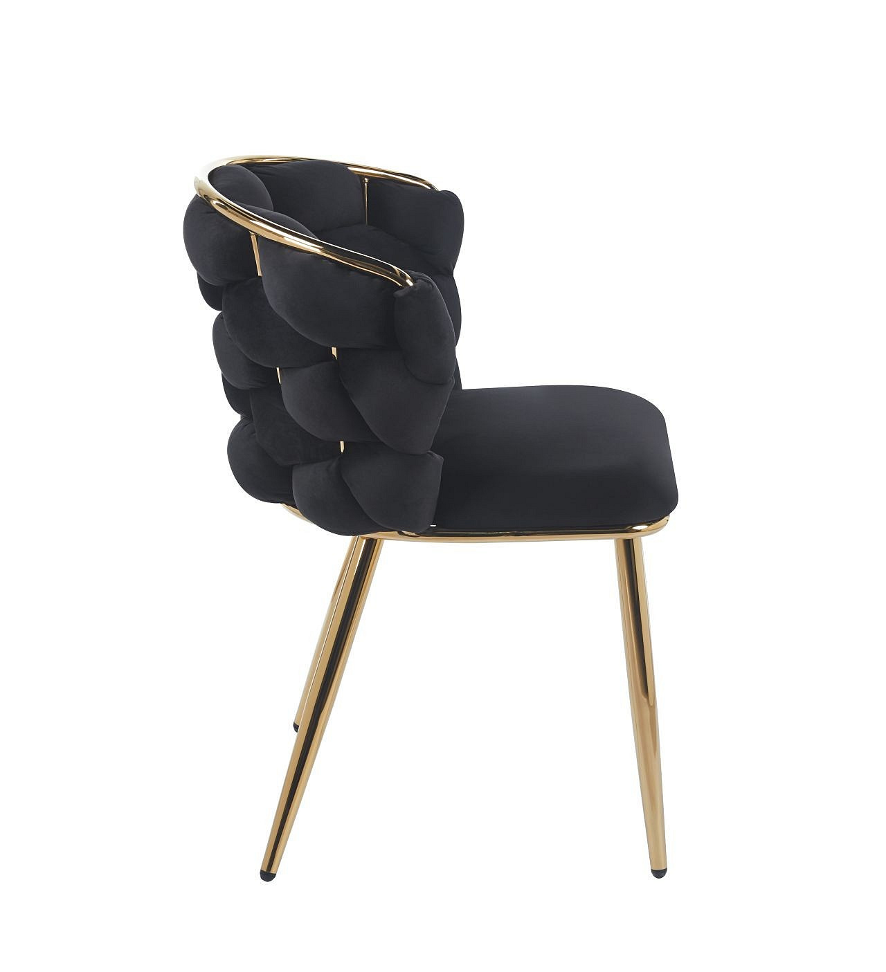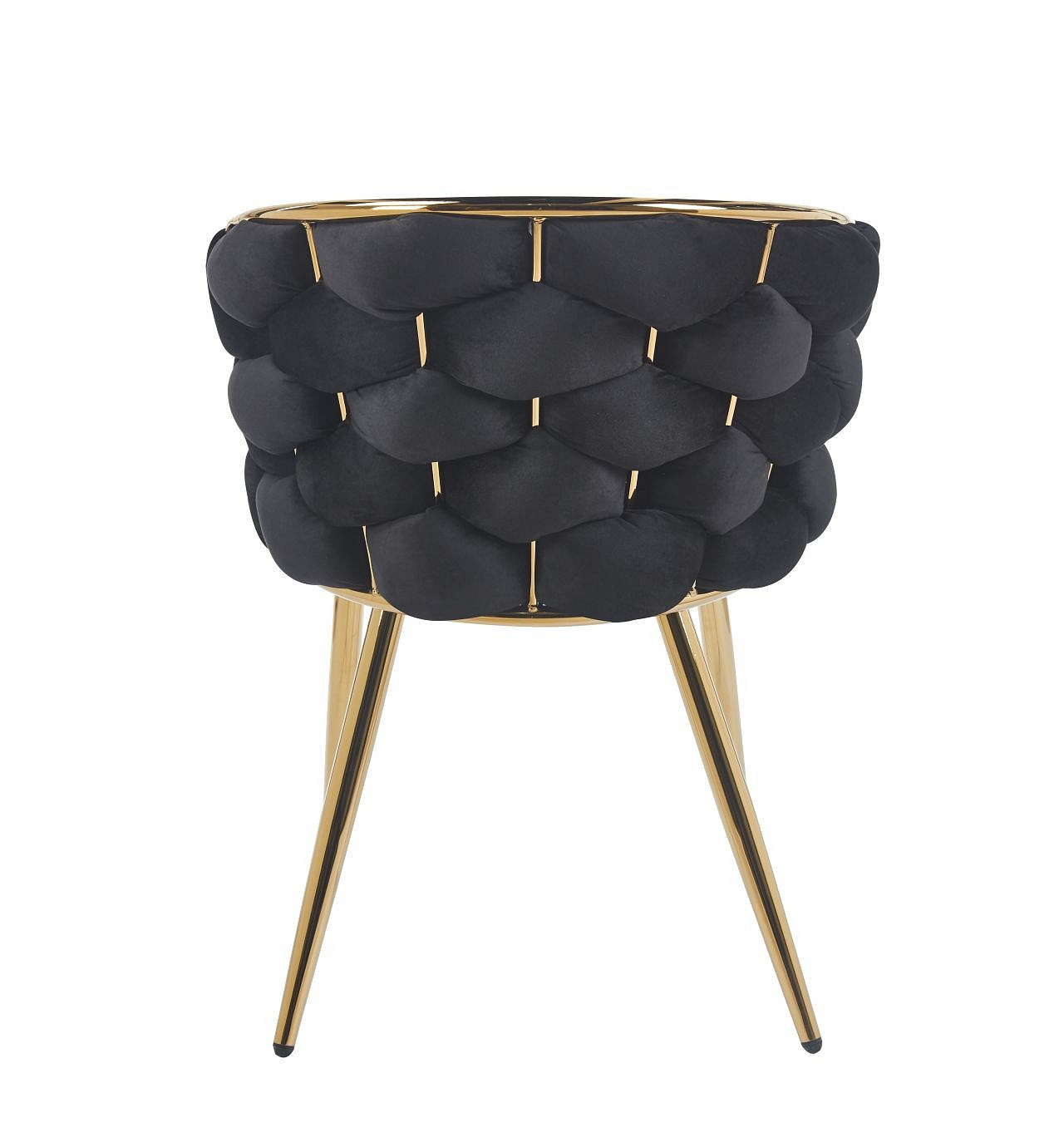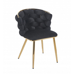 Rozměry: - šířka sedáku: 47 cm - celková šířka: 57 cm - výška sedáku: 49 cm - celková výška: 78 cm - hloubka sedáku: 42 cm Materiál - čalounění: samet - rám: chrom Barva: - sedák: černá - rám: zlatá