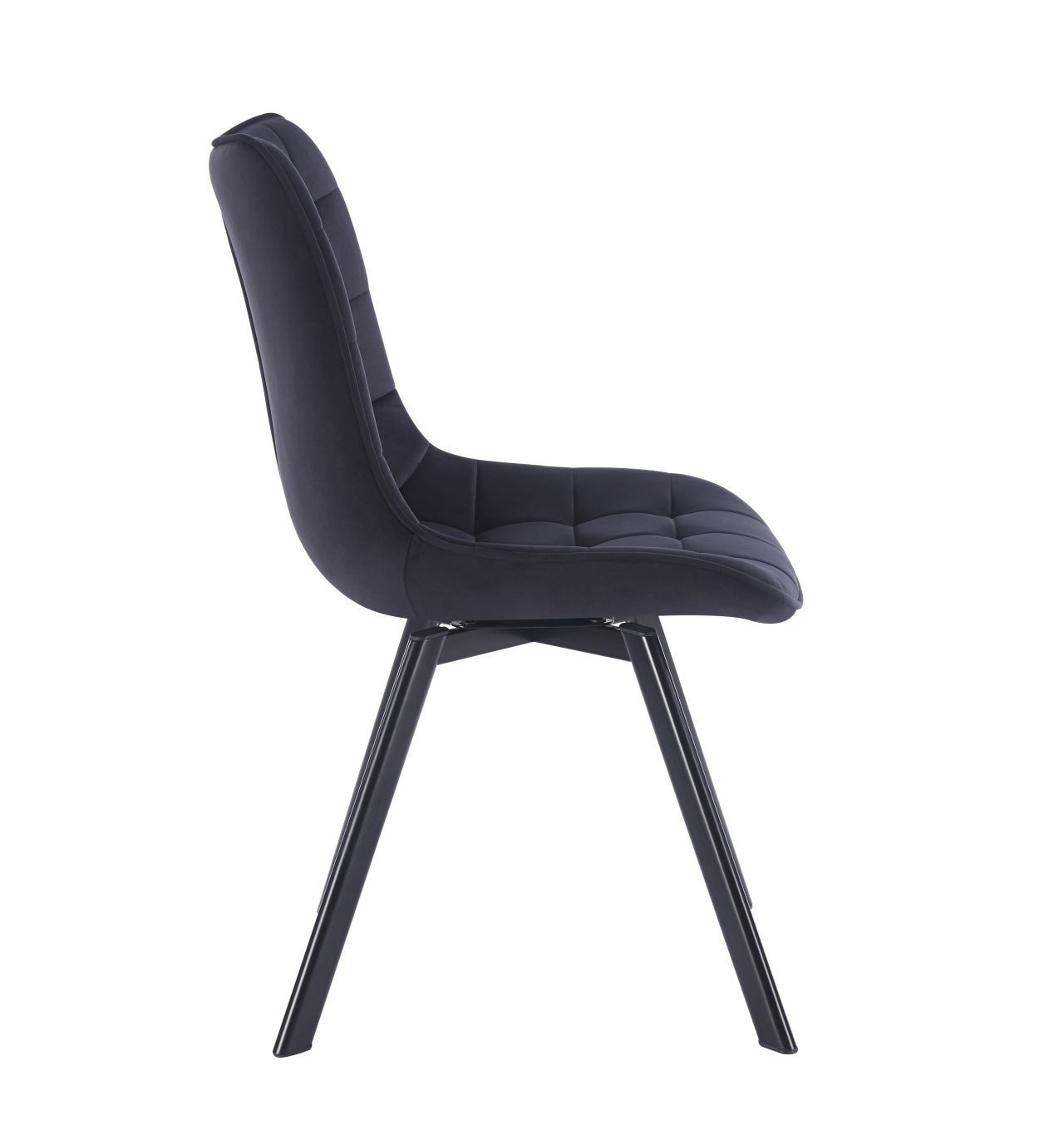 Židle má sedadlo otočné v rozsahu 180 stupňů s funkcí návratu do výchozí polohy.Rozměry: - šířka sedáku: 50 cm - výška sedáku: 47 cm - celková výška: 86 cm - hloubka sedáku: 42 cm Materiál - čalounění: samet - nohy: kov lakovaný práškovou barvou Barva: - sedák: černý - nohy: černé