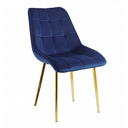 Rozměry: - šířka sedáku: 51 cm - výška sedáku: 49 cm - celková výška: 89 cm - hloubka sedáku: 44 cm Materiál - čalounění: samet - nohy: chrom Barva: - sedák: modrý - nohy: zlaté