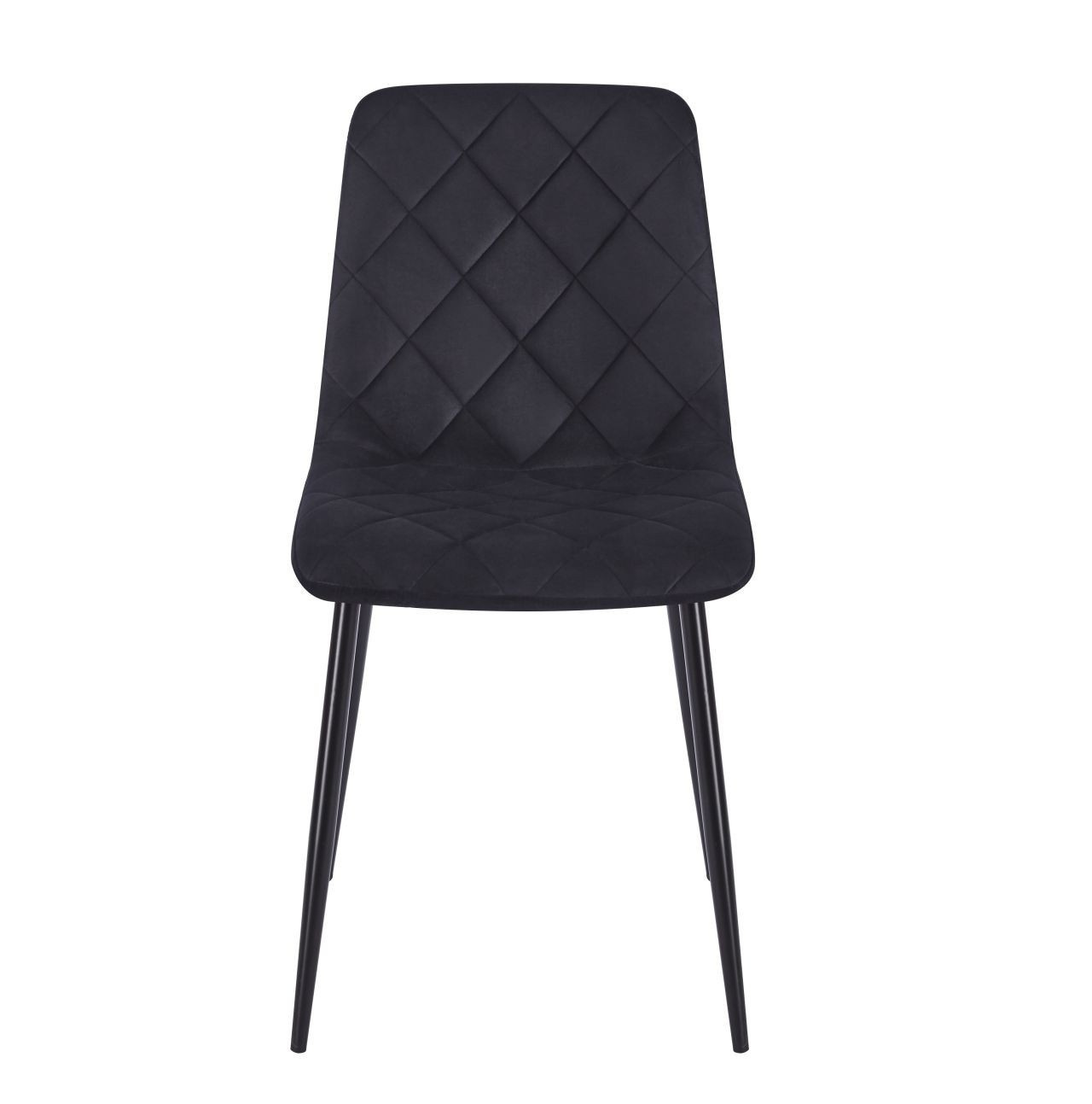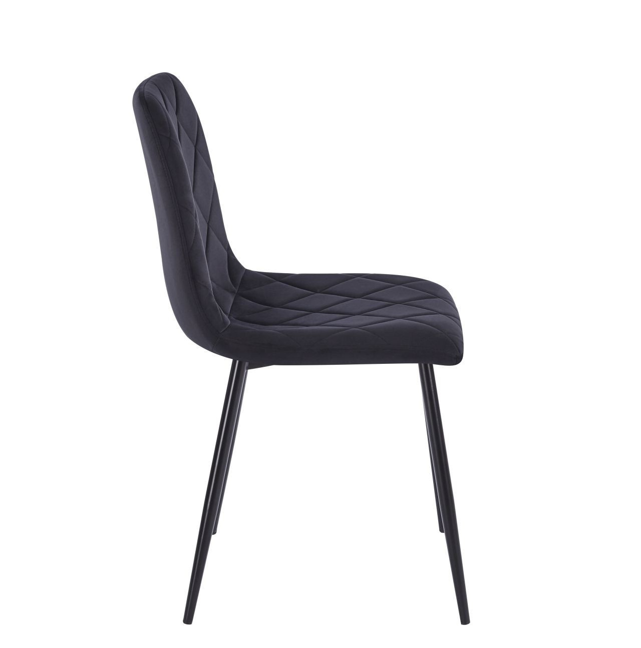Rozměry: - šířka sedáku: 44 cm - výška sedáku: 49 cm - celková výška: 87 cm - hloubka sedáku: 40 cm Materiál - čalounění: samet Davis Riviera 100 - nohy: kov lakovaný práškovou barvou Barva: - sedák: černý - nohy: černé