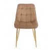Rozměry: - šířka sedáku: 51 cm - výška sedáku: 49 cm - celková výška: 89 cm - hloubka sedáku: 44 cm Materiál - čalounění: samet Davis Riviera 24 - nohy: chrom Barva: - sedák: cappuccino - nohy: zlaté