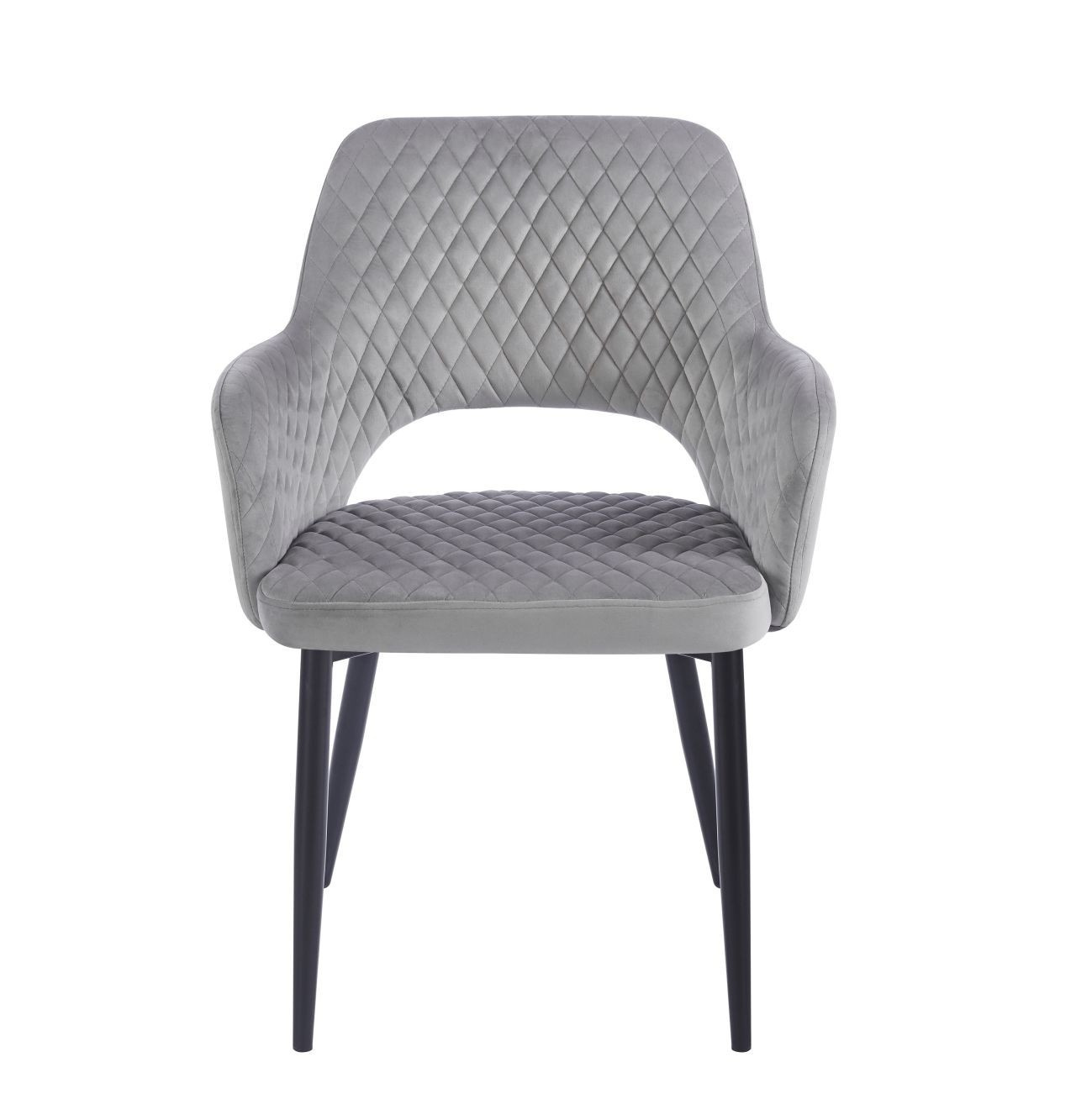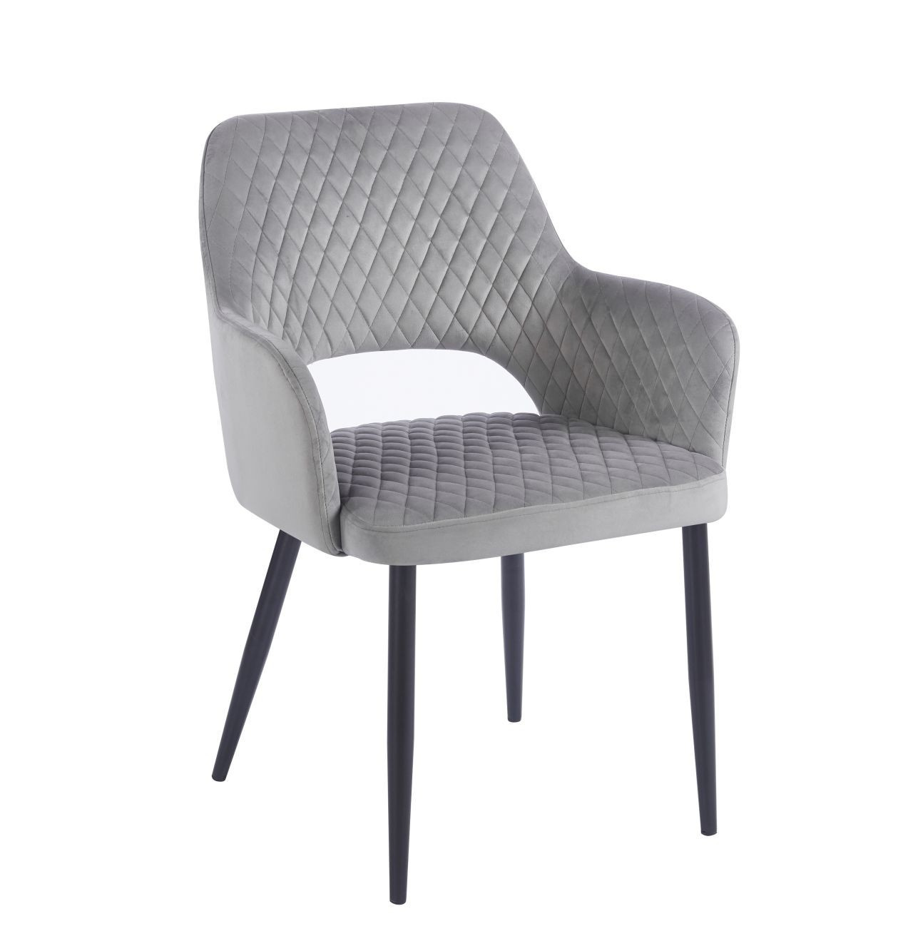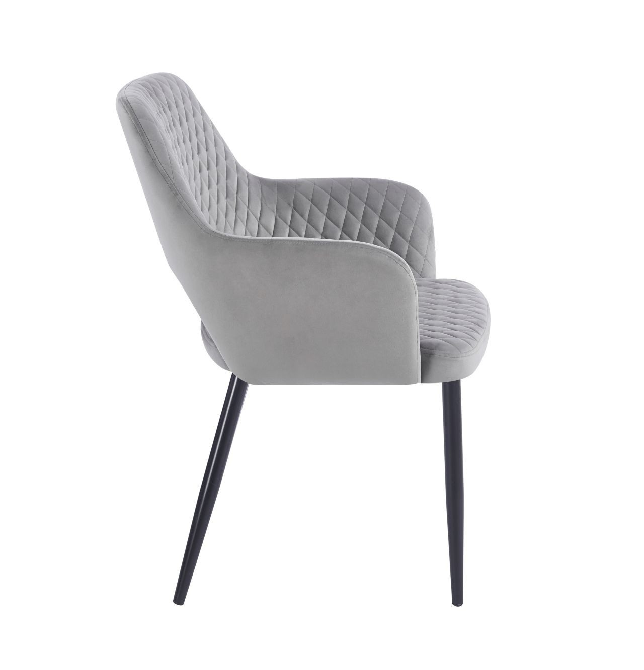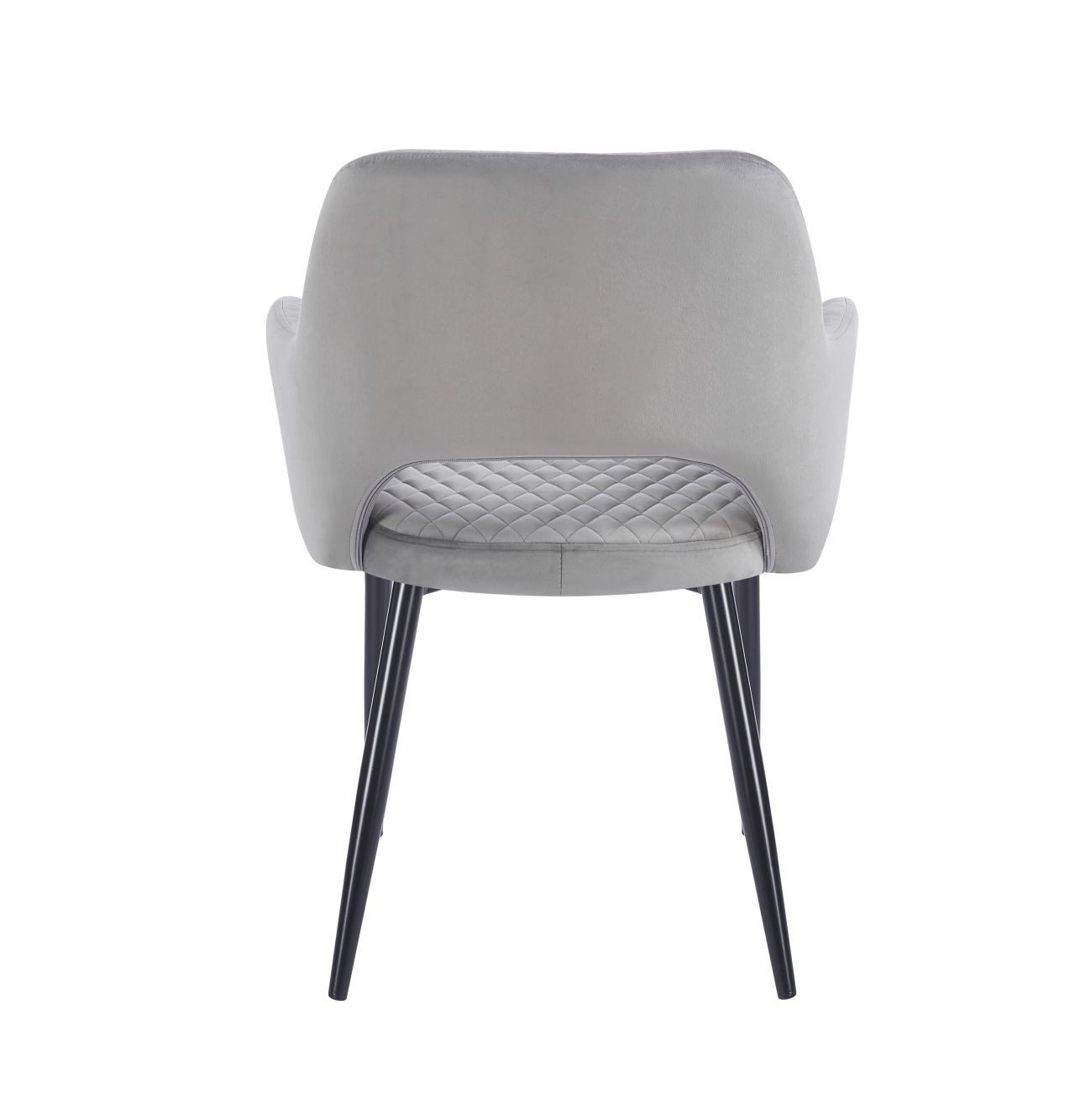 Rozměry: - celková výška židle: 85 cm - výška k područce: 65 cm - výška sedáku: 48 cm - výška područky: 19 cm - výška od sedáku k horní části opěradla: 40 cm - šířka sedáku: 48 cm - šířka židle: 59 cm - hloubka sedáku: 48 cm - tloušťka sedáku: 6 cm Materiál: - čalounění: samet - nohy: kov lakovaný práškovou barvou Barva: - sedák + opěradlo: šedé - konstrukce: černá