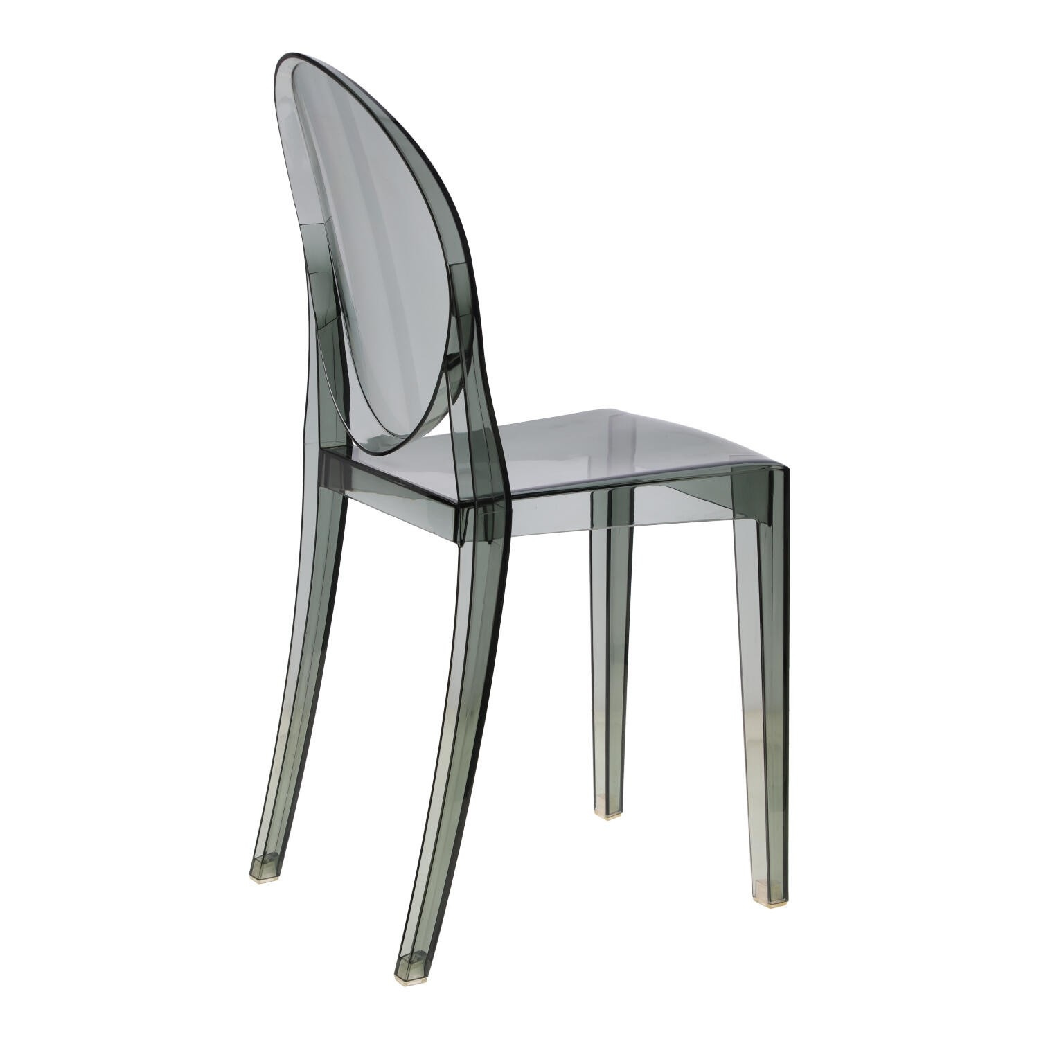 Vyrobeno z jednoho kusu polykarbonátu, židle spojuje čistý design a pevnou strukturu s lehkostí vzhledu. Zaoblená horní část opěradla kontrastuje s hranatým sedákem, což vytváří nečekaně elegantní celek. Kromě jemnosti formy je židle stabilní a pevná, a navíc odolná vůči povětrnostním vlivům.Prezentovaný produkt je inspirován projektem Victoria.Maximální zatížení je 120 kg