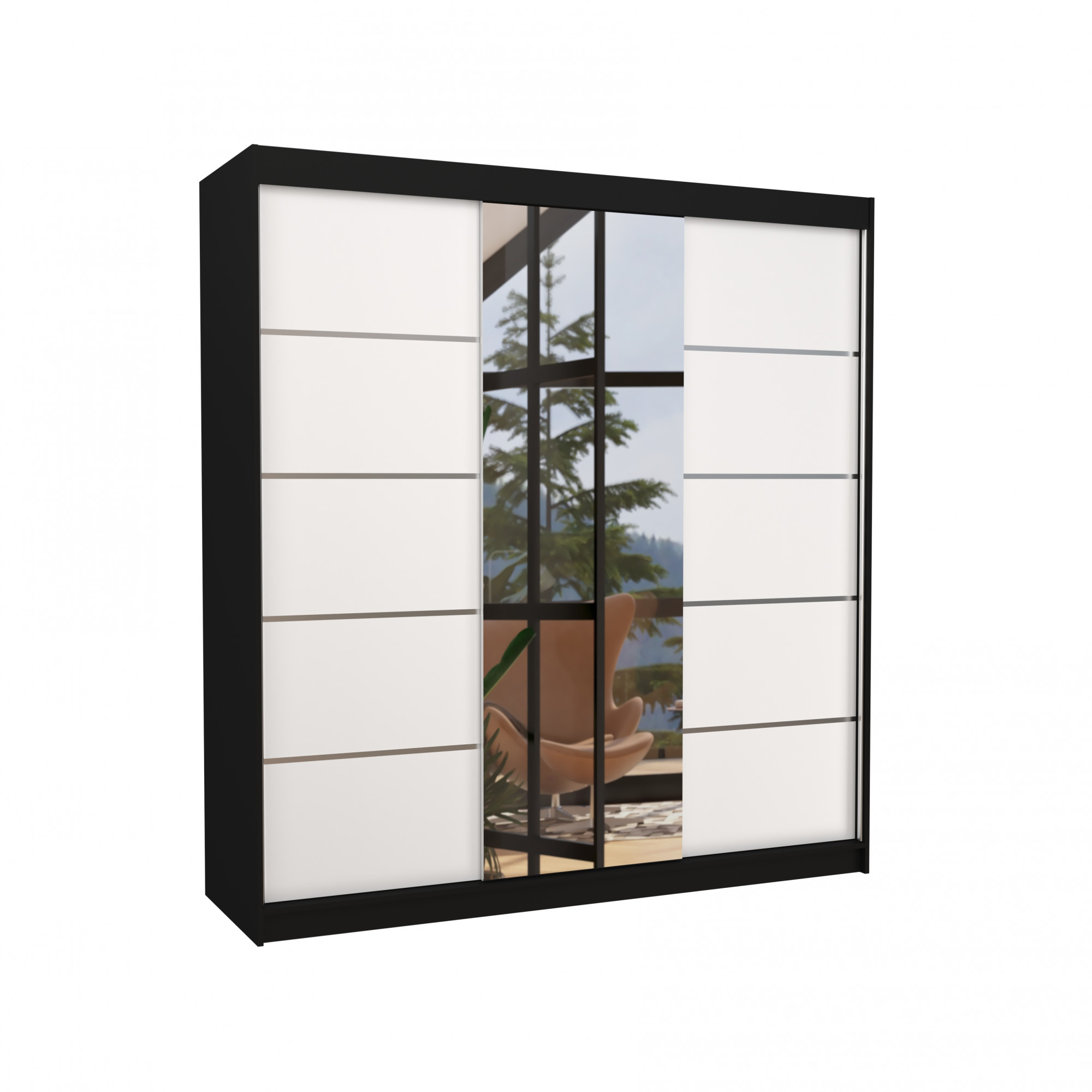 Posuvná skříň se zrcadlem BERGEN 200 Černá+Bílá