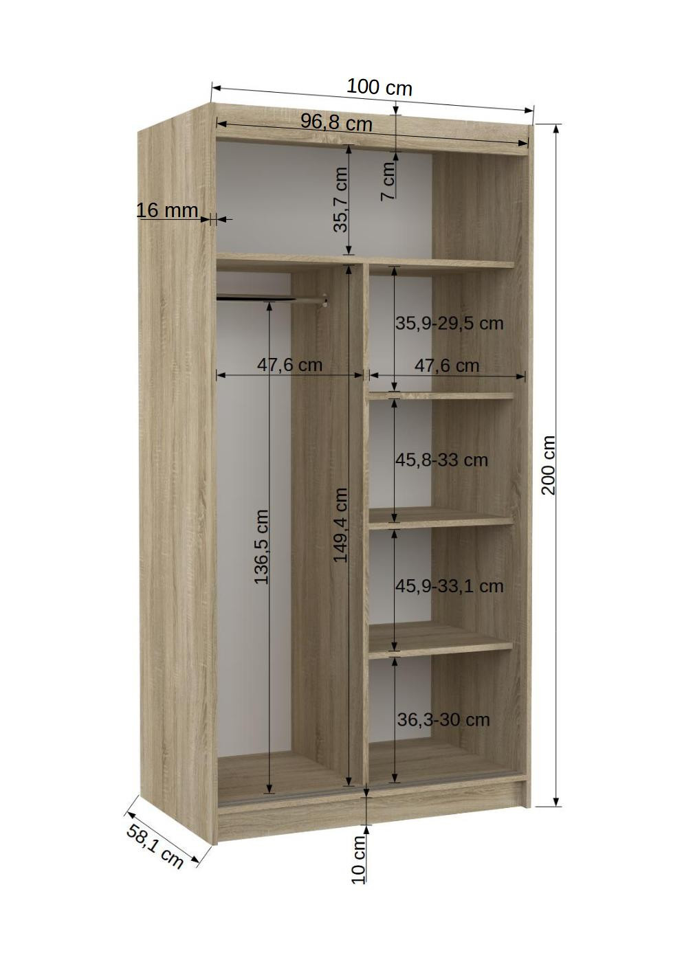 Posuvná skříň se zrcadlem DRAGONIS 100 Bílá+Sonoma