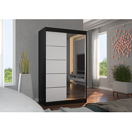 Šatní skříň s posuvnými dveřmi a zrcadlem NICEA 120 Černá+Bílá