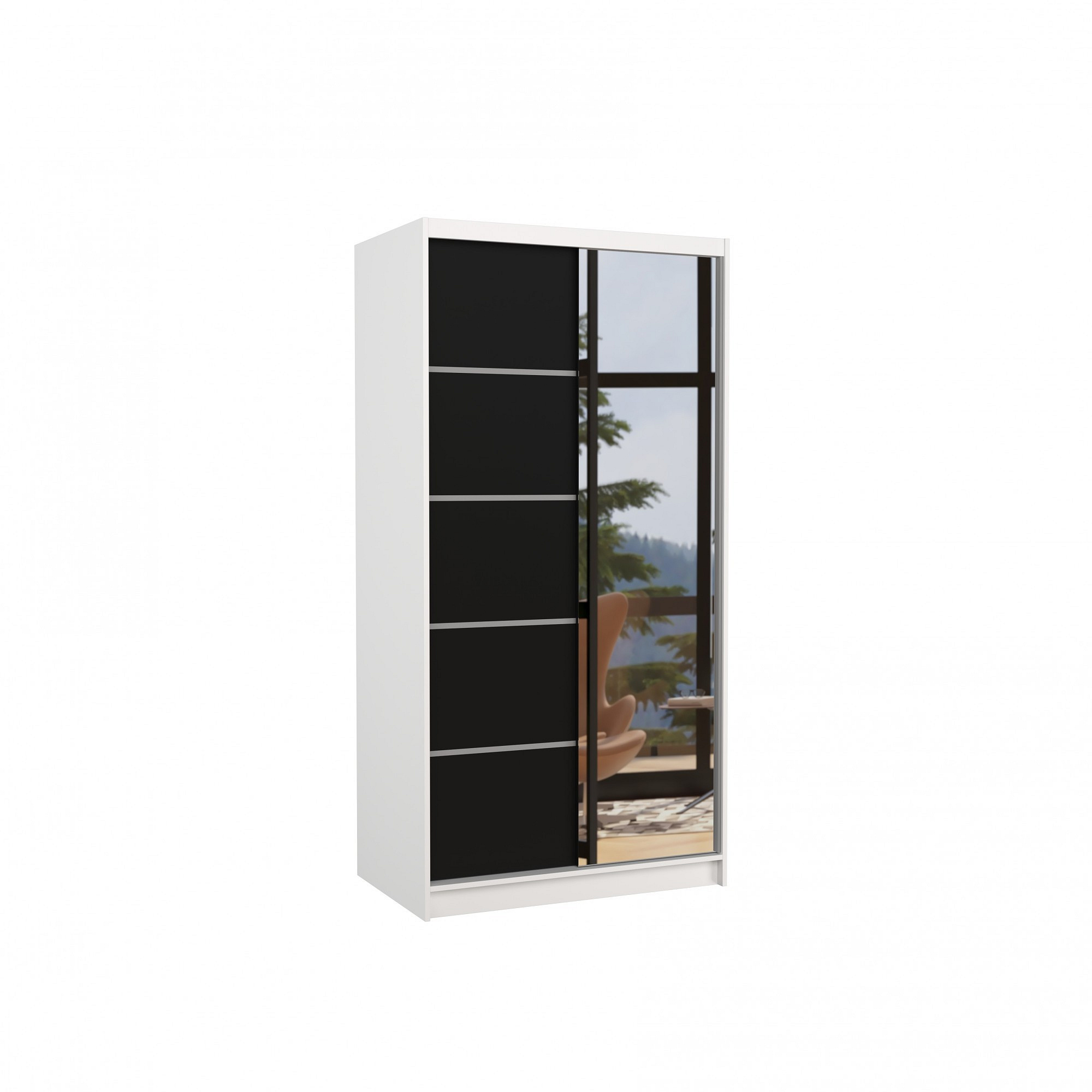 Posuvná skříň se zrcadlem ORLANDO 100 Bílá+Černá