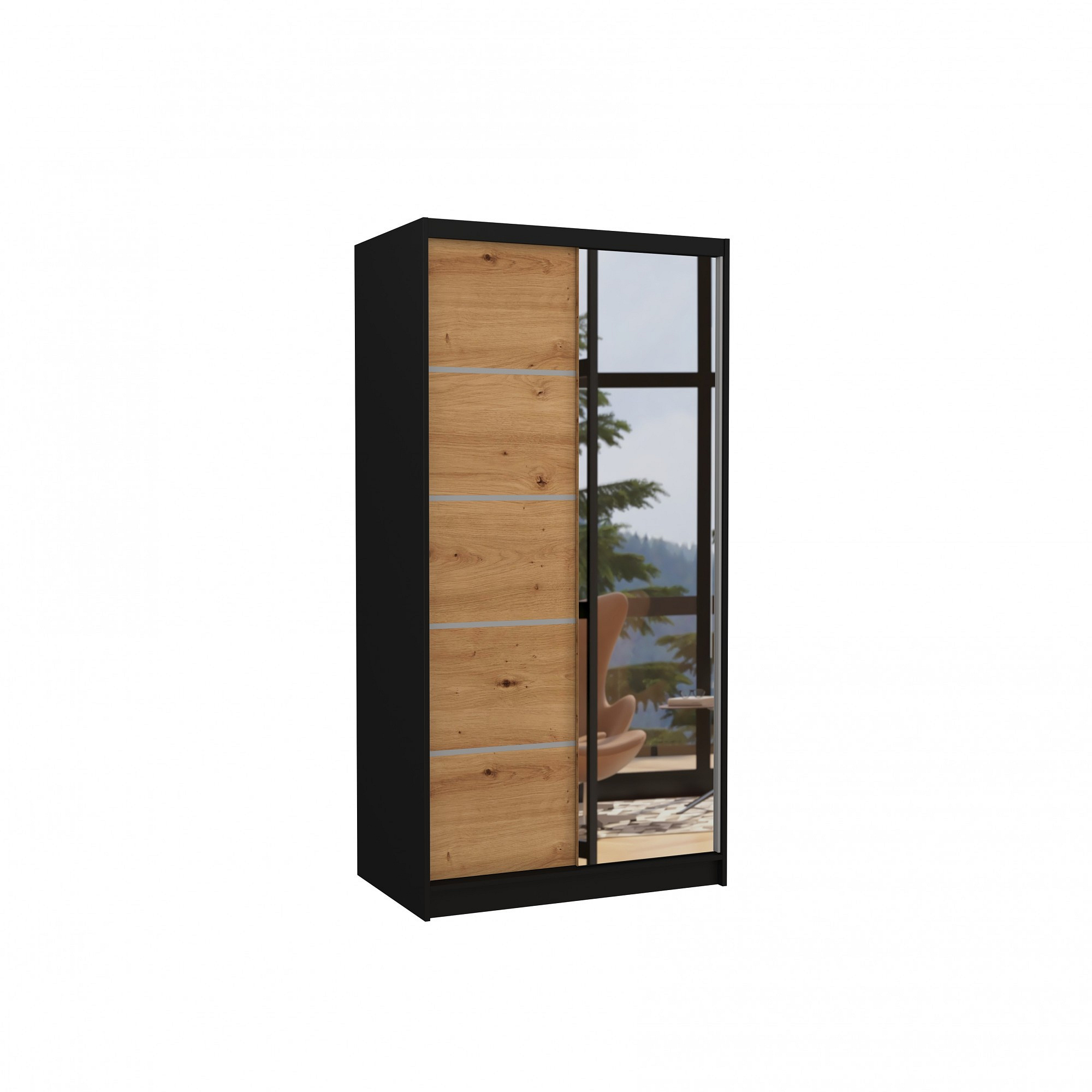 Posuvná skříň se zrcadlem ORLANDO 100 Černá+Artisan