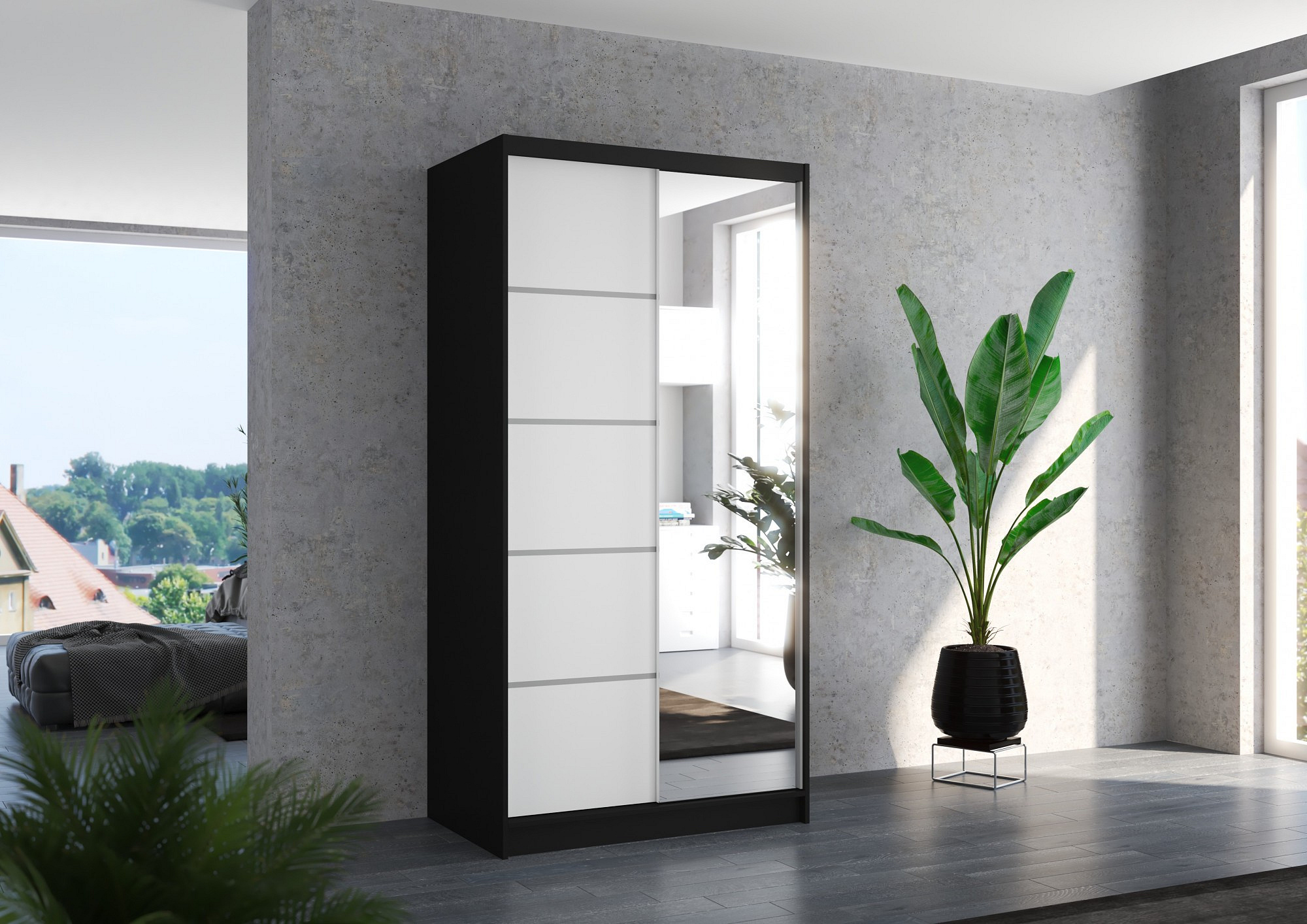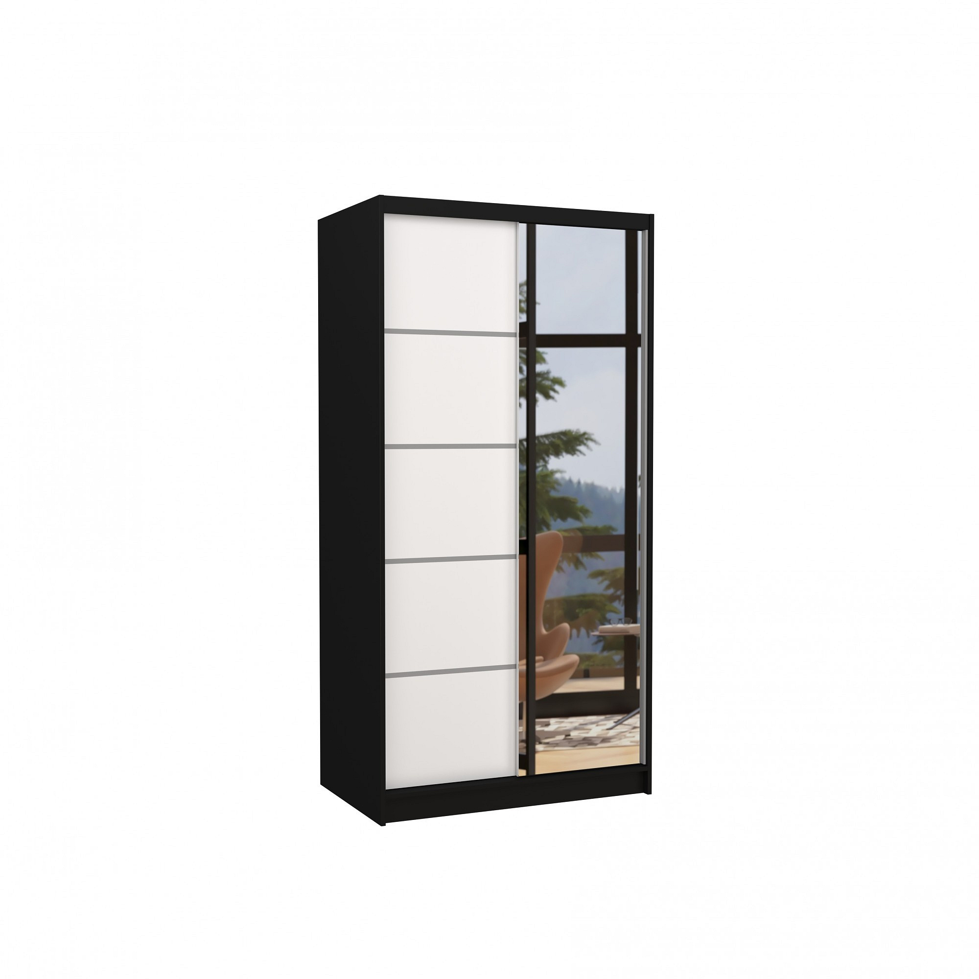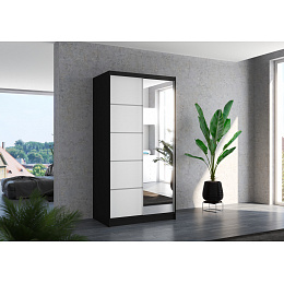 Posuvná skříň se zrcadlem ORLANDO 100 Černá+Bílá