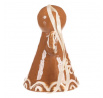 Závěsný vánoční zvoneček ve tvaru anděla vypadá jako sladká perníková pochoutka. Jeho červená „poleva“ s jemnými bílými ornamenty dodává dekoraci slavnostní a hravý vzhled. Perfektní doplněk na vánoční stromek nebo jako doplněk sváteční výzdoby v interiéru.