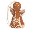Zvonek perníkový - keramika, tvar anděl, závěsný, hnědý