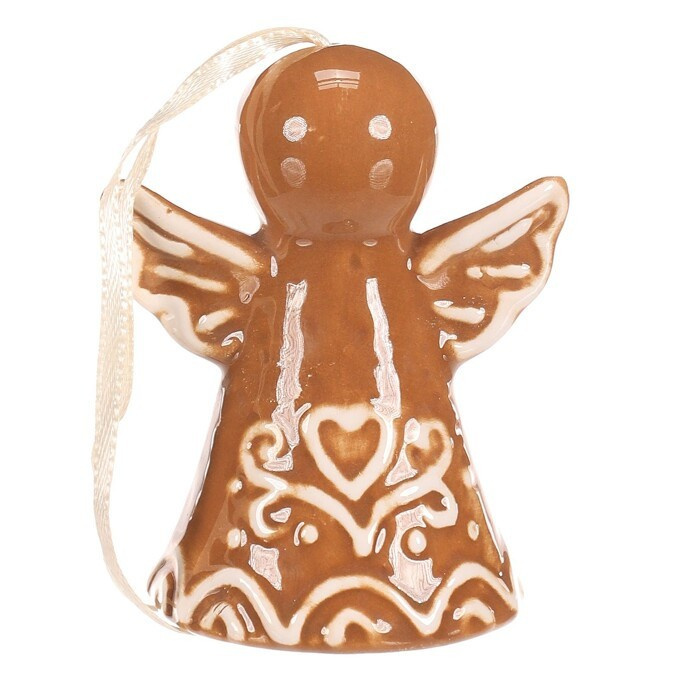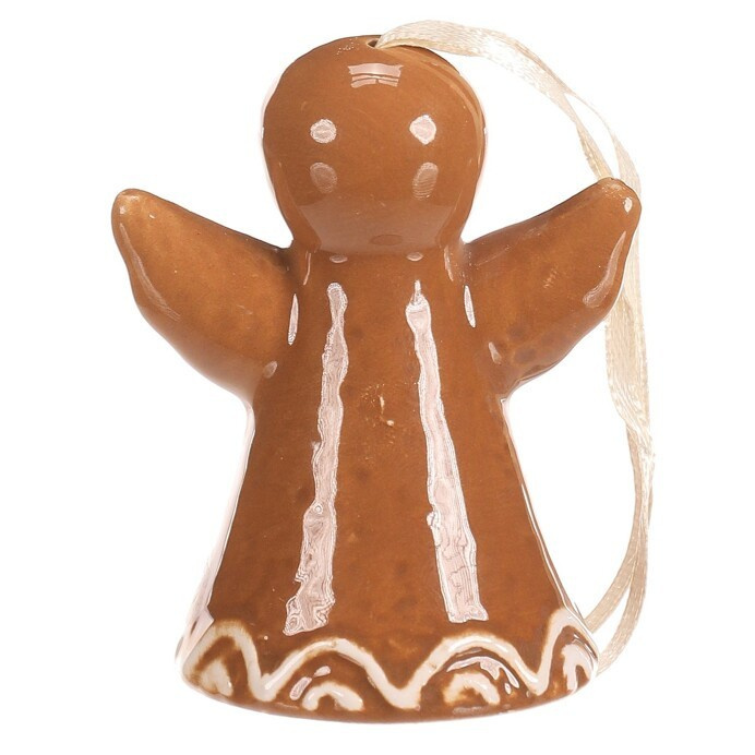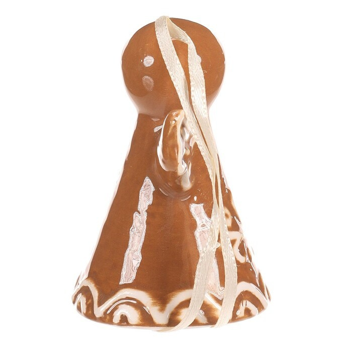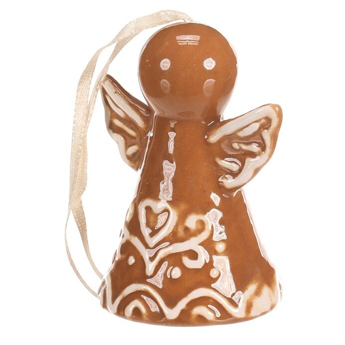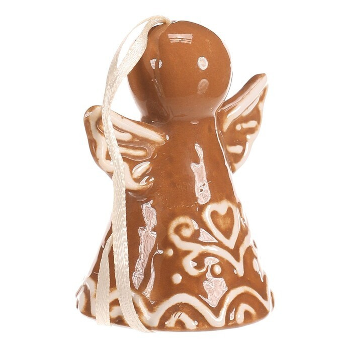 Zvonek perníkový - keramika, tvar anděl, závěsný, hnědý